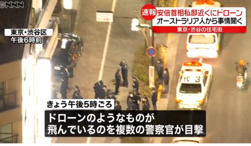 综合日本朝日电视台、《读卖新闻》等媒体报道,当地时间10日下午5点左右,在位于东京涉谷区的安倍官邸及日本副首相麻生太郎的官邸等地上空,相继有目击者发现无人机的踪迹。
