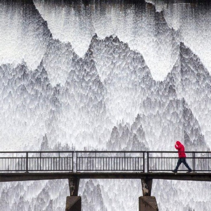 下面这张拍摄于美国纽约布鲁克林大桥上的照片,帮助摄影师 Rudolf Sulgan 获得了 2020 年年度天气摄影师(Weather Photographer of the Year)的头衔。他的这张照片从全球 2600 名摄影师,7700 多张候选照片以及26副入围照片脱颖而出,主要展现了人们身着厚重的服装在银装素裹的布鲁克林大桥上行走的画面。