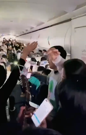 在飞机起飞之后,这些蔚来车主,甚至还解下安全带,离开了座位,在飞机内开起了“空中音乐会”。