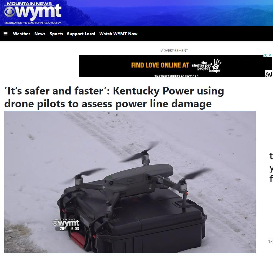 肯塔基电力公司(Kentucky power)供应商基威特(Kiewit)公司的现场检查服务经理乔纳森•比蒂(Jonathan Beaty)说:“我们的主要目标是获取他们所需的信息,以便我们能够尽快恢复供电。”报道称,该公司自2016年以来一直利用无人机检查配电和输电线路的损坏情况。