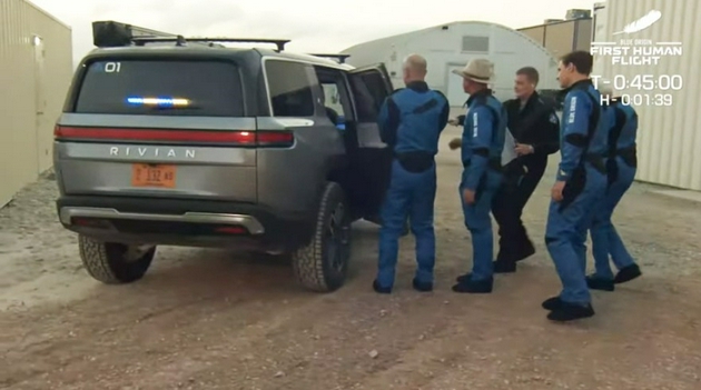 蓝色起源利用其首次载人任务的发射,发布了Rivian公司的第一辆电动汽车(Rivian由亚马逊领投)。