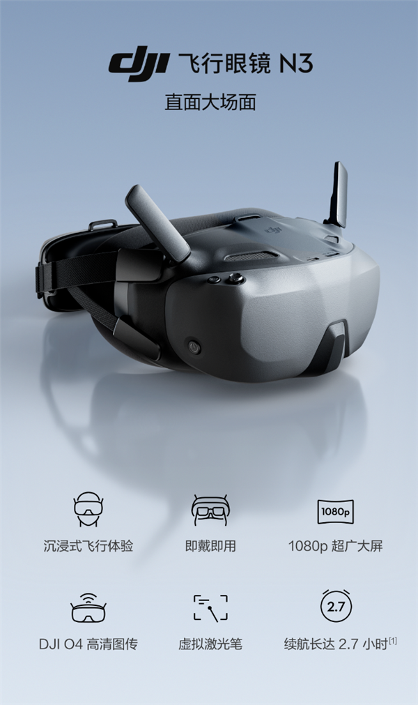 11月6日消息,大疆发布飞行眼镜N3,售价1499元,适配大疆Avata 2和大疆Neo。