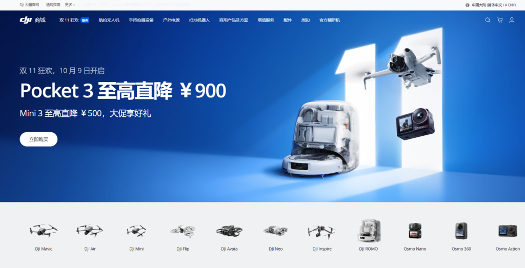 10 月 6 日消息,大疆官方商城及京东平台显示,大疆 Osmo Pocket 3 云台相机将于 10 月 9 日 0 点-10 月 14 日 24 点至高直降 900 元。