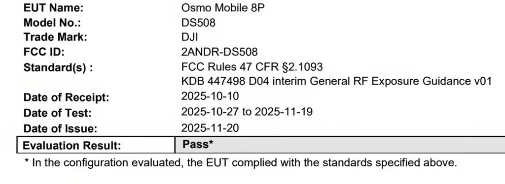 参考 Osmo Mobile 8 于 2025 年 10 月发布的时间节点,以及 DJI 获得认证后通常在 180 天内发布的惯例,该媒体认为 Osmo Mobile 8P 最有可能的发布窗口锁定在 2026 年 3 月底至 4 月初。