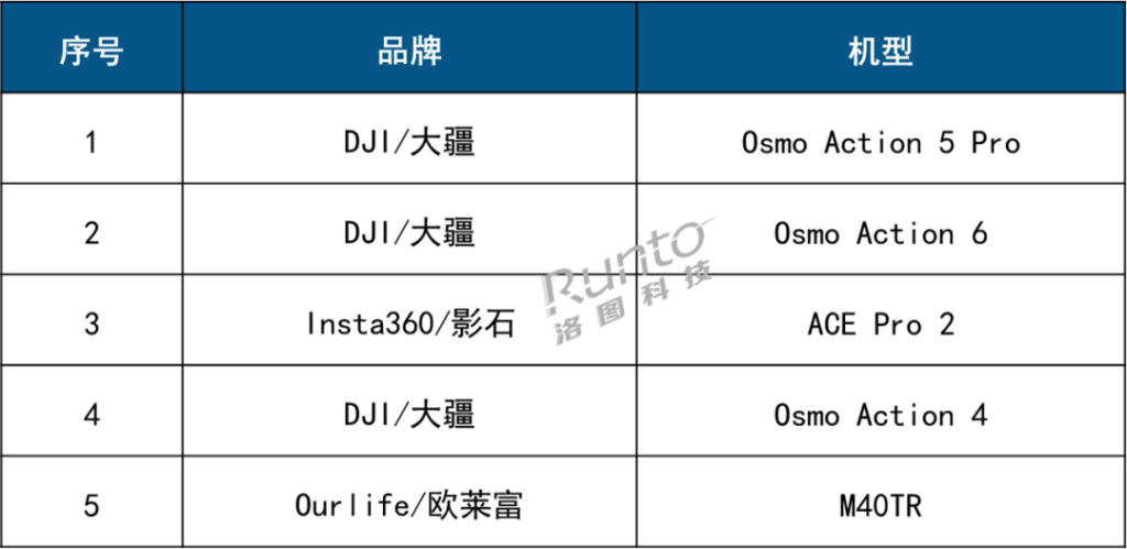 该市场中,大疆份额达70.0%,前五畅销机型中占据3席,其中Osmo Action5 Pro排名第一;Insta360影石占比21.4%。