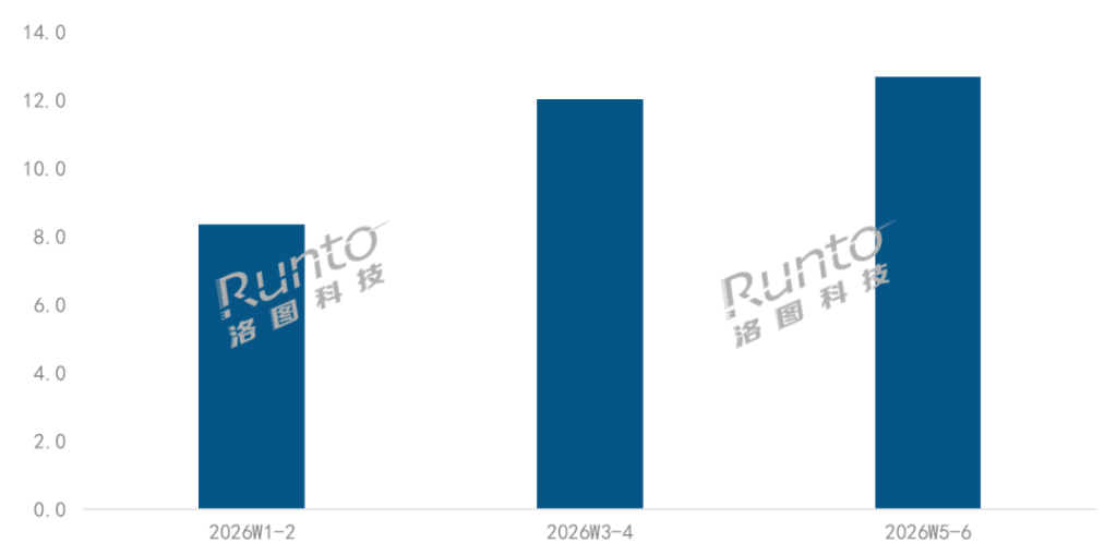 2026年第1-6周 中国运动相机(含全景、可穿戴)线上市场销量走势