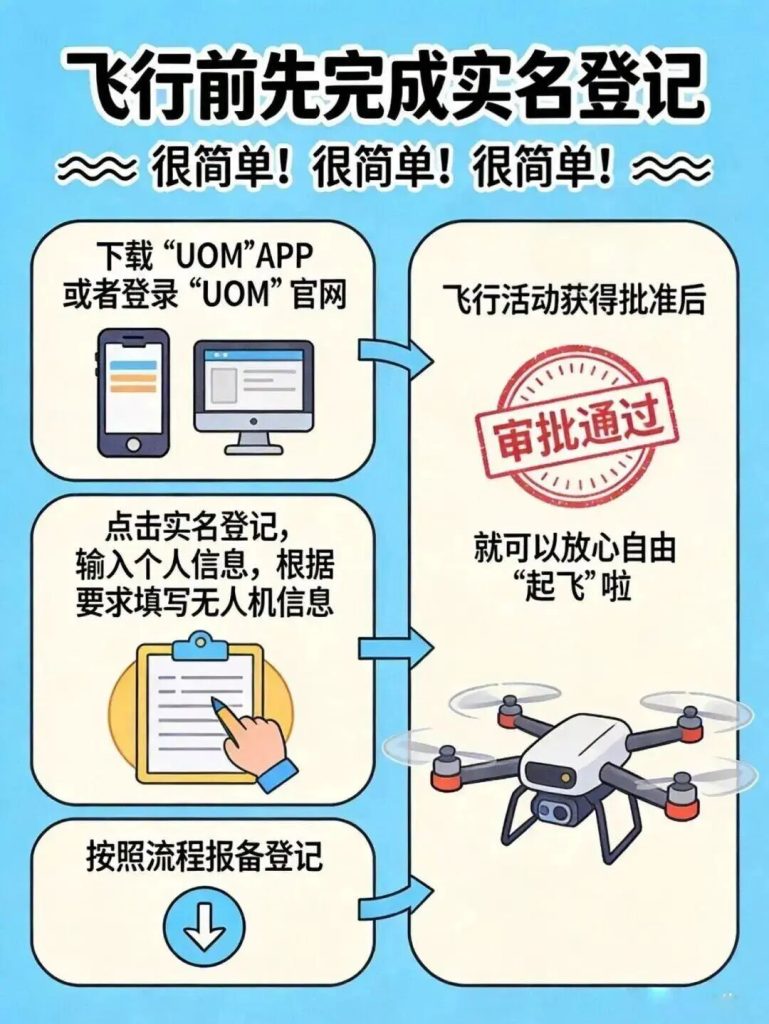 使用UOM APP或登录民用无人驾驶航空器综合管理平台完成信息注册。(https://uom.caac.gov.cn)