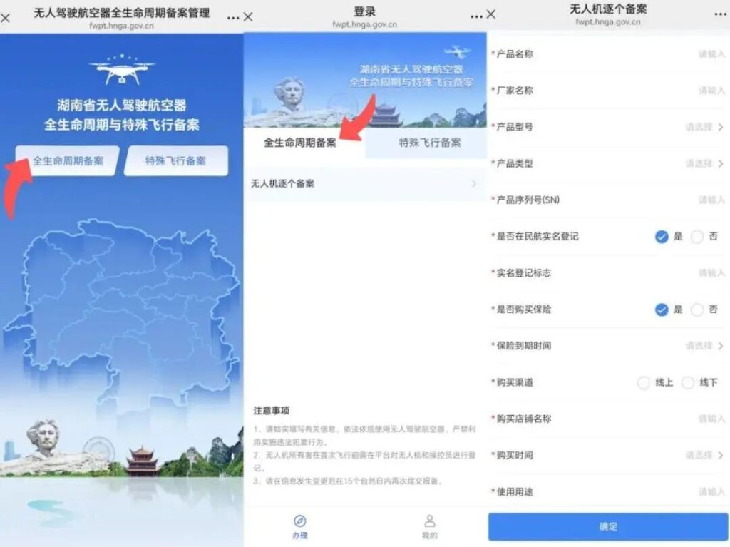 新用户注册审核通过后,再按照以下操作进行无人机备案。